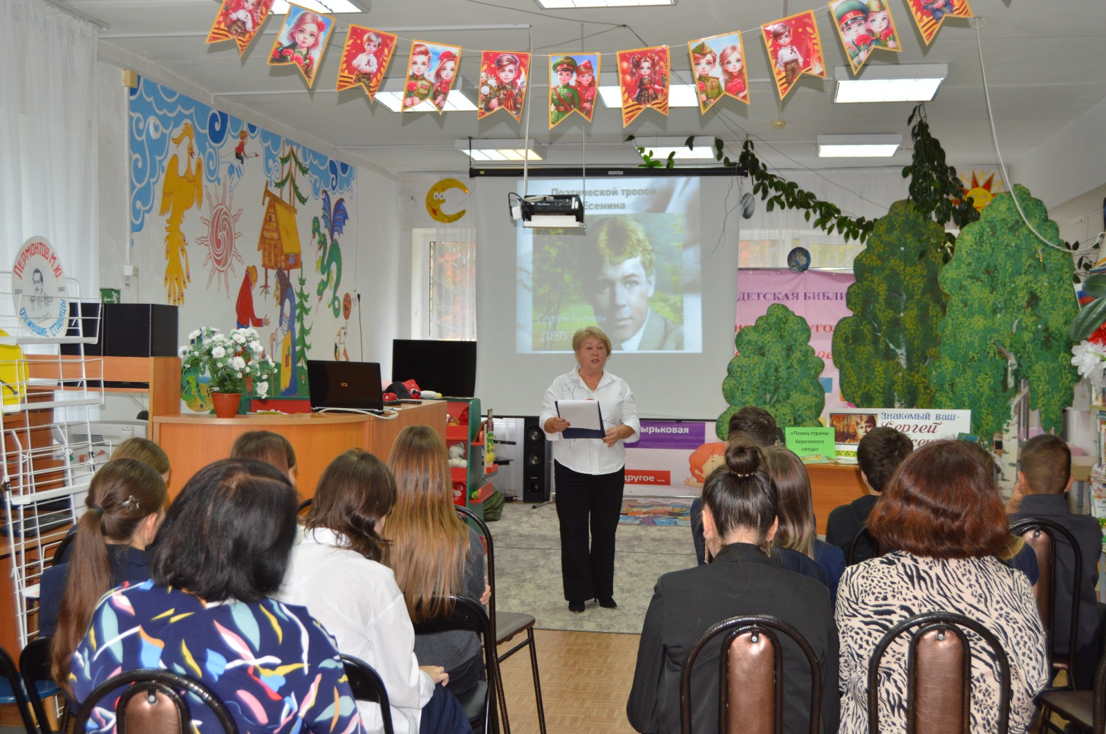 В рамках 130-летия со дня рождения Сергея Есенина в центральной детской библиотеке с учащимися 8А класса гимназии №1 прошла литературная гостиная «Поэтической тропой Есенина».