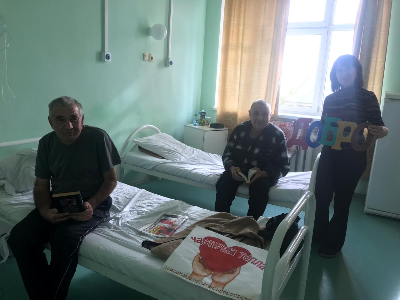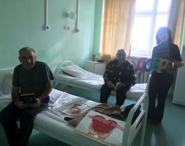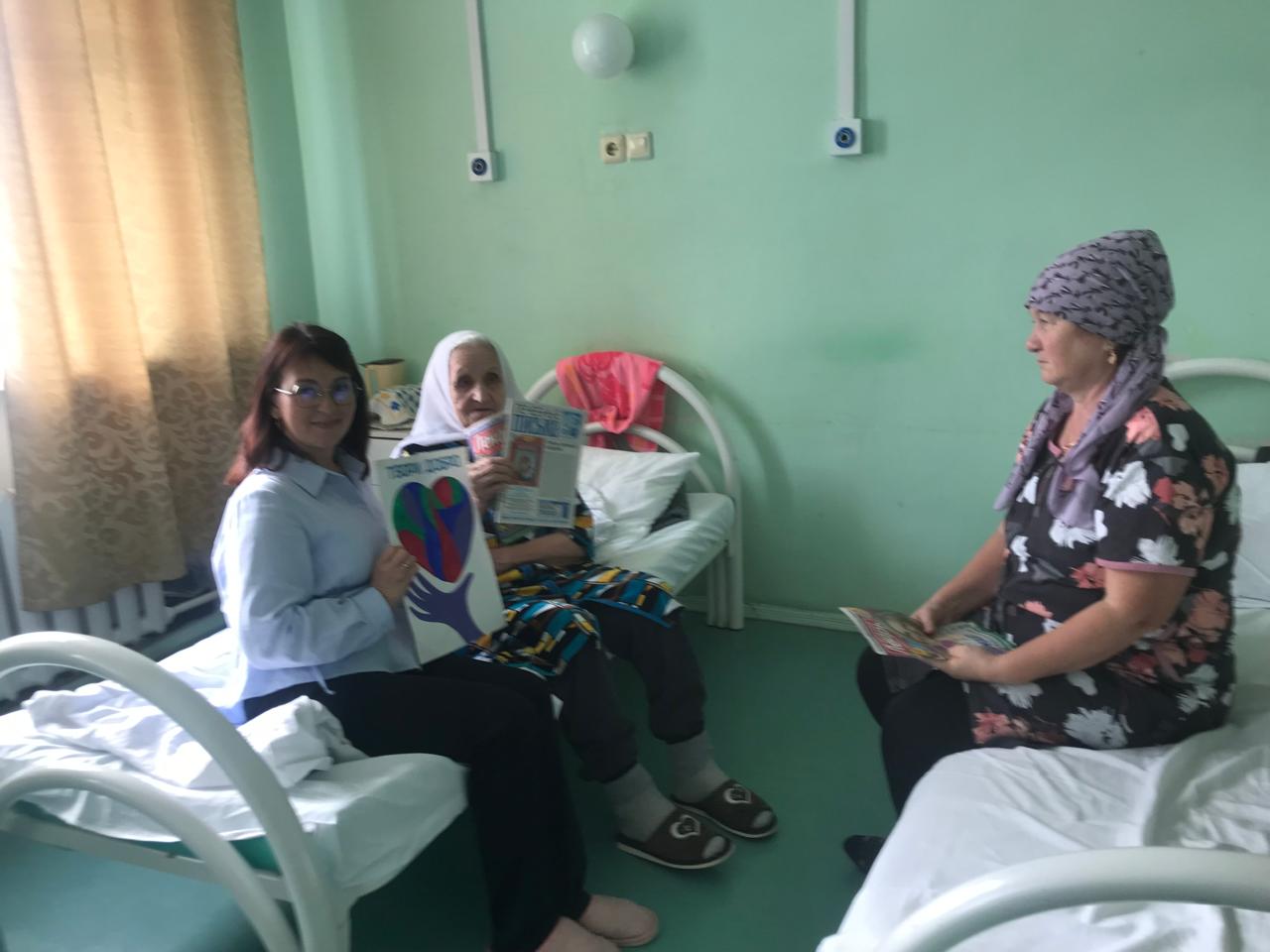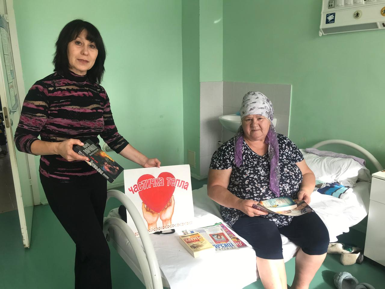 В рамках акции "Дарю Тепло", посвященная «Всемирному дню почты», сотрудники отдела обслуживания Центральной библиотеки навестили больных в больнице, которые по причине болезни и других физических особенностей не могут посещать библиотеку.