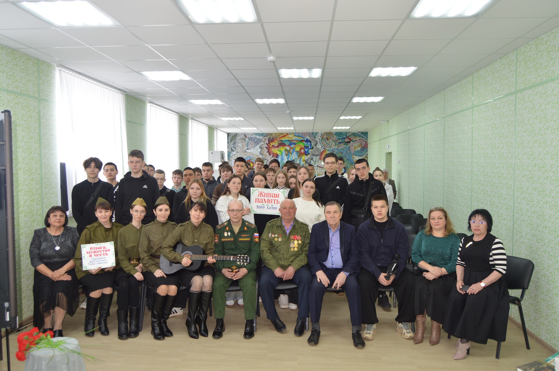 Указом Раиса Республики Татарстан 2026 год объявлен «Годом воинской и трудовой доблести». В рамках реализации проекта «Пушкинская карта» сотрудники отдела обслуживания Центральной библиотеки со студентами Агротехнического техникума провели урок мужества под названием «Живая память».