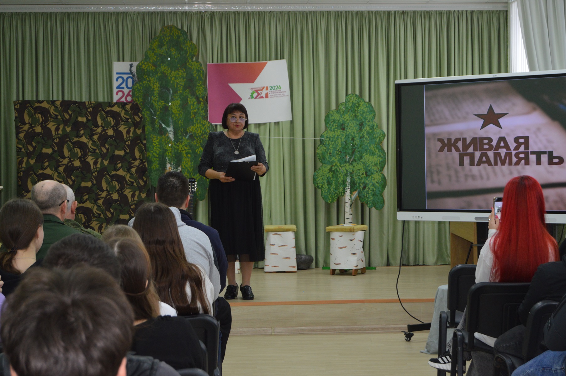 Указом Раиса Республики Татарстан 2026 год объявлен «Годом воинской и трудовой доблести». В рамках реализации проекта «Пушкинская карта» сотрудники отдела обслуживания Центральной библиотеки со студентами Агротехнического техникума провели урок мужества под названием «Живая память».